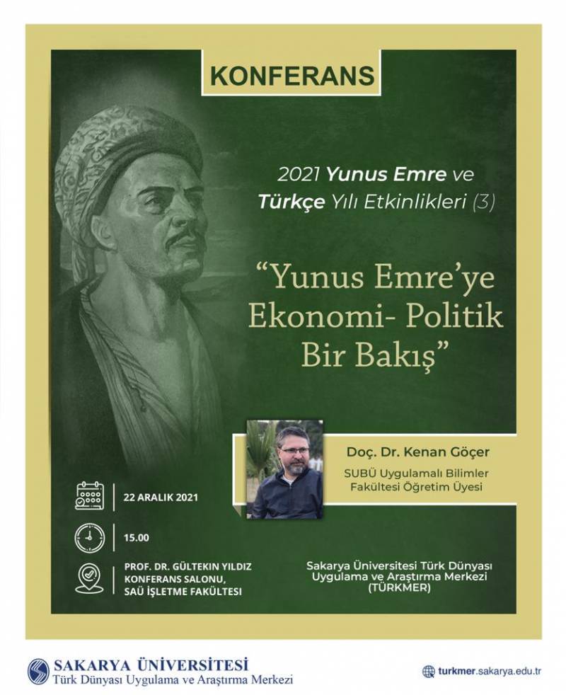2021 Yunus Emre ve Türkçe Yılı Etkinlikleri kapsamında planlanan 3. konferansımızda “Yunus Emre'ye Ekonomi-Politik bir Bakış” konusuyla konuğumuz Doç. Dr. Kenan GÖÇER olacaktır.