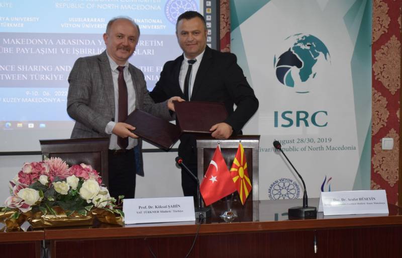 Yapılan bir diğer antlaşma ise TÜRKMER ile Uluslararası Vizyon Üniversitesi Balkan Araştırmaları Enstitüsü arasında gerçekleştirildi. Bilimsel işbirliğini artırmak ve Balkanlarda genişletmek hedefiyle yapılan antlaşmaya TÜRKMER müdürü Prof.Dr. Köksal Şahin ile Uluslararası Vizyon Üniversitesi Balkan Araştırmaları Enstitüsü Müdürü Doç.Dr. Arafat Hüseyin kurumları adına imza attılar.