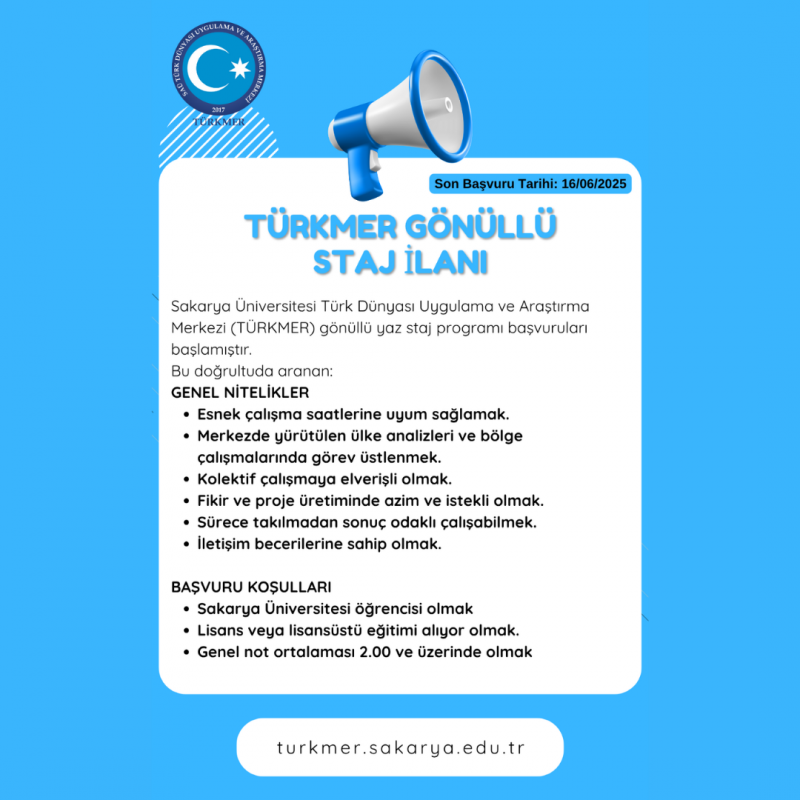 TÜRKMER 2025 YAZ DÖNEMİ GÖNÜLLÜ STAJ İLANI